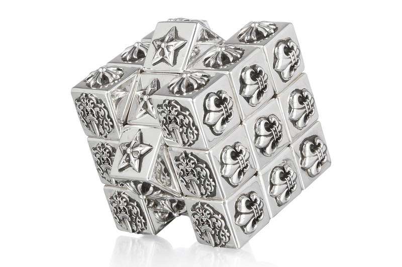 Originally released in 2017, the oddity is crafted of complete 0.925 silver and is fully functional for solving. The Puzzle Cube is constructed at Chrome Heart's Los Angeles headquarters and features six sides marked by signature emblems and motifs. Designs featured include daggers, hearts, stars, banners, crosses and fleur-de-lis that can be mixed or left complete for a striking look.