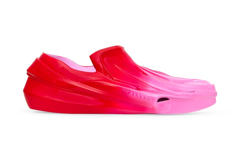 T-shirts and hoodies celebrate the SS22 film "Beyond," shot on the fiery island. Visuals from the front display "1017 ALYX 9SM BEYOND" in bright red paint print, and the back incorporates "BEYOND" in perspective text in the center, and mentions "Stromboli-Ginostra," the main settlement on the island above the waistband. A pair of necklaces in red and black adjustable length cord are adorned with individual metal tubes with 1017 ALYX 9SM logo engraving. Lastly, the futuristic Mono Slip On built with a single piece of EVA foam is dressed in bright red with a specialized pink fade on the forefoot.
