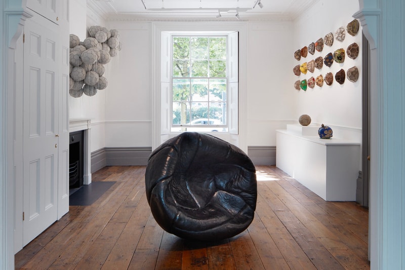 The exhibit showcases 17 works that either utilize or represent soccer balls. A large inky black deflated ball by Marcus Harvey is centered in one room along with two contrasting works of a number of balls gathered on opposite walls. On the next floor, The Longest Ball in the World by French artist Laurent Perbos which a former Tottenham Hotspur captain kicked lightly is rolled out beneath a piece Abigail Lane entitled Self-Portrait as a Pheasant which is constructed from a football, bird wings, oil paint, painted wood and glass. Other quirky works such as a ball embellished with nipples created by Argentine artist Nicola Costantino had visitors taken aback.