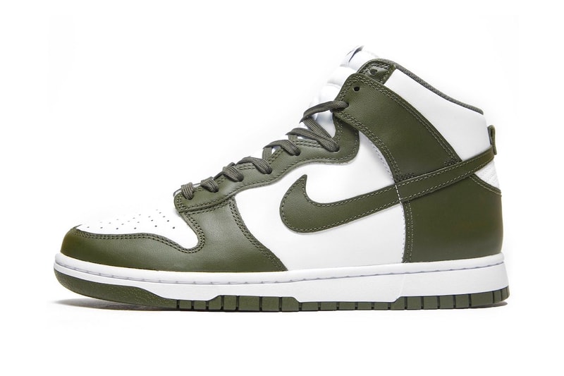 Debuted back in 2017, Nike's Dunk High "Cargo Khaki" is making a return this fall. Although recent reports of vibrant colorways such as the Nike Dunk Low "Midas Gold" as well as a pink and white finish have surfaced on the internet, the sportswear giant seems to intend to diversify its fall lineup with a few neutral offerings.