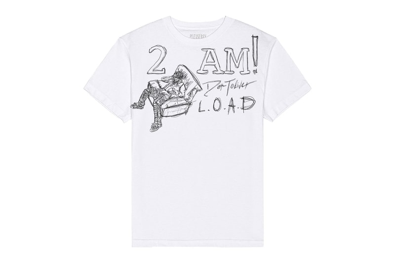 Marking the release of the project, the collaborative drop is comprised of two T-shirt designs centered around haphazard scribble drawings. Both offerings feature full screen prints on 6oz combed cotton bases with tubular side seams and a relaxed fit. One T-shirt style references the track "2AM," while the other simply shows the scribble of the Houston artist. Both T-shirts are marked with "PLEASURES" branding with "DON TOLIVER" underscoring the motif.