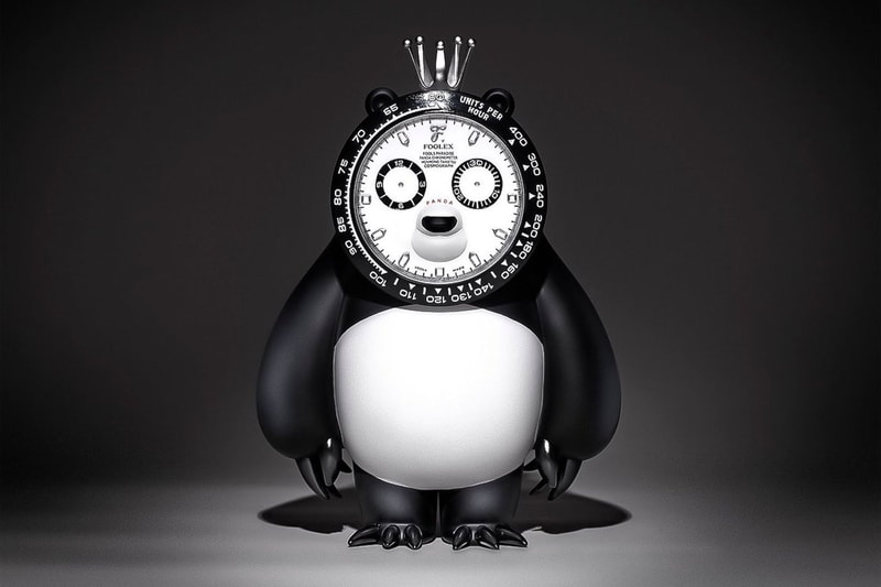 A panda snout protrudes from the flat surface while the 12 o'clock position reads "FOOLEX." The black-and-white theme continues to the body of the panda while a stubby tail, two ears, and a silver crown finish off the toy. Standing at 11 inches in height, this figure is limited to 499 examples and is priced at $298 USD. Head over to the Fools Paradise web store to order one today.